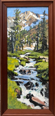 The paintings here are my most recent, done on location, with some follow-up studio work. Most were done this year. I spent a month on the North side of Mt Shasta, two weeks backpacking in the Trinity Alps Wilderness, and close to home, many happy days, painting in the redwood parks and among the bluffs of the coastline. A few paintings came quickly to me, most, over several days, or more, depending upon consistent weather. The frames are self-made.