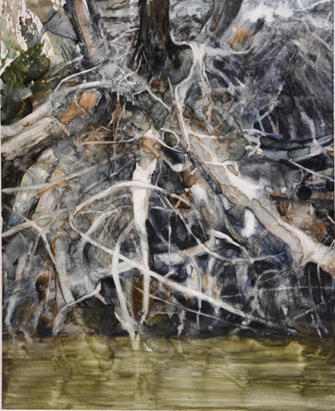 Lynda Nugent charcoal, graphite, watercolor on wood 19.5 x 17", $ 950.